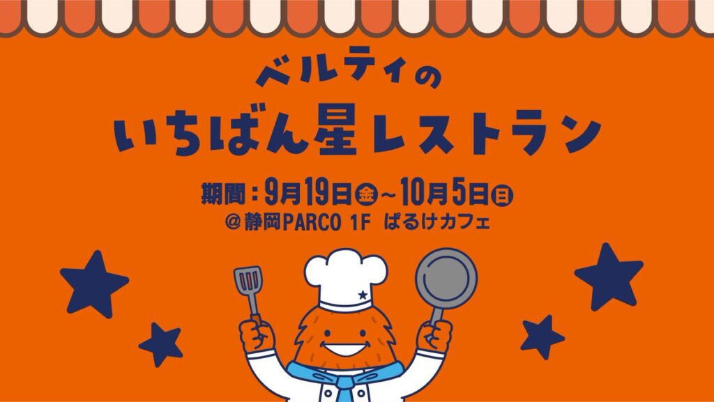 さらに、静岡PARCO 1階「ぱるけカフェ」では、「ベルテックス静岡」の公式マスコットキャラクター『ベルティ』による、ひとつ星シェフベルティ監修の「ベルティのいちばん星レストラン」が期間限定オープンします。こちらにも是非足をお運びください。